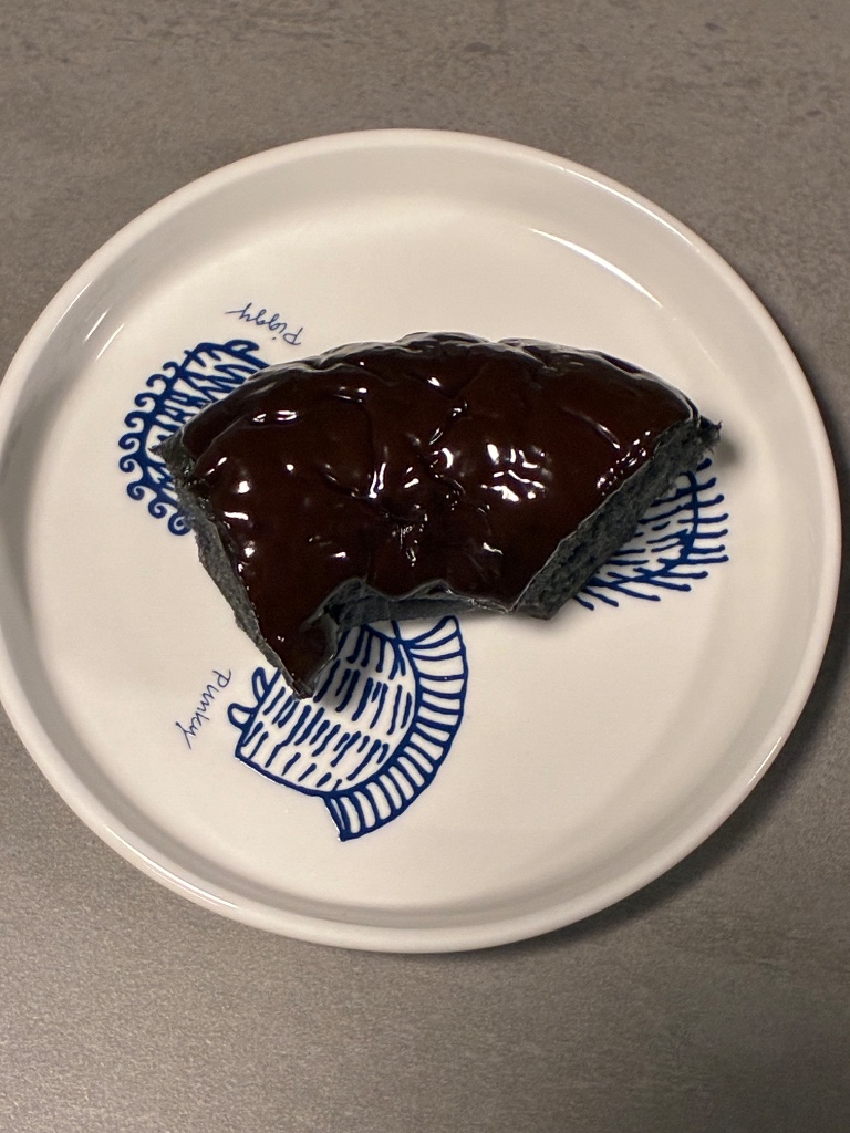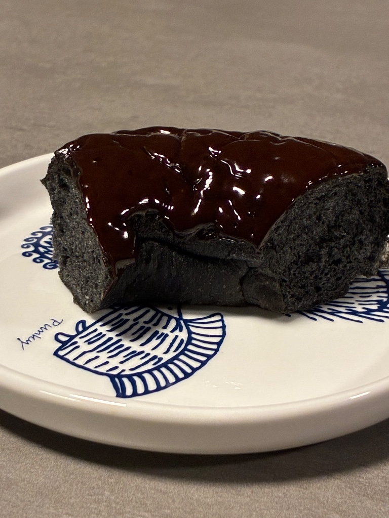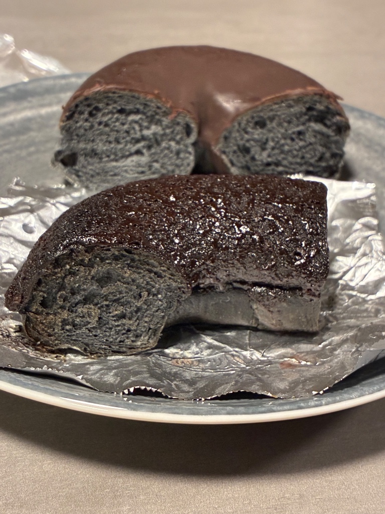 ふんわりもっちりとした黒いドーナツ生地にチョコレートコーチングを掛けたドーナツです。