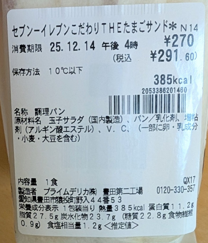 今週の新商品🐥さすがこだわりのTheたまご✨️ たまご本来の美味しさとより食感を感じられるサンドイッチです。 原料高騰に加えてたまごのカットサイズを変更し価格を税抜230円から270円に変更いたします。 とのこと🍀 385㎉ 270円(税込291.60円) 2025年12月10日(水)以降順次発売 「セブンのこだわり」と パッケージにも書いてあり 気になっていた新商品です(*^^*)✨️ パン生地は 程よく…続きを読む