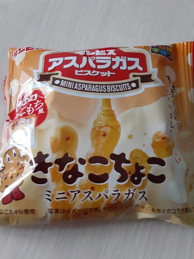 ギンビス しみチョコミニアスパラガス きなこもち風。気になっていたこの新商品。さっそく購入しました。