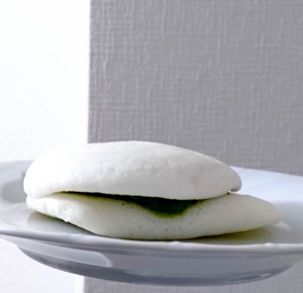 もちっと食感の白いどら焼生地で、宇治抹茶クリームと果肉入りのいちごソースを挟んだどら焼です。