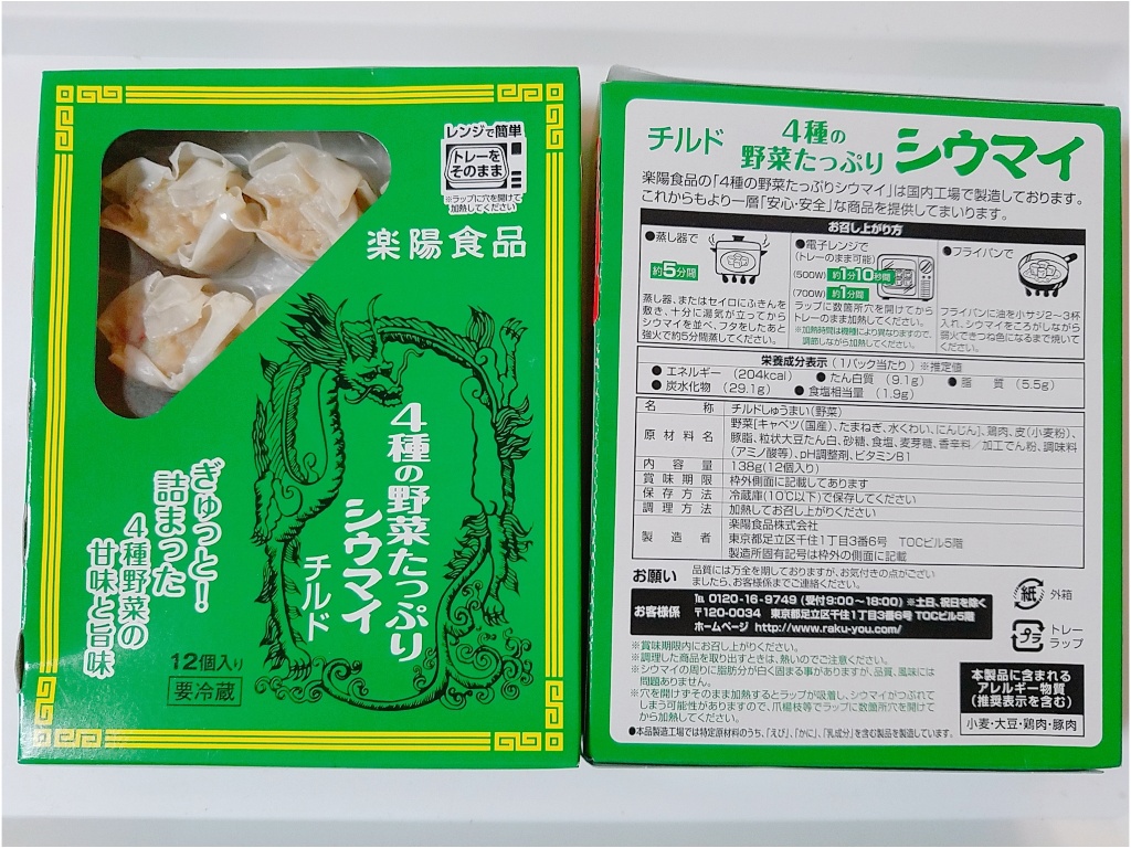 赤箱でなく、緑色の箱で野菜シュウマイです。