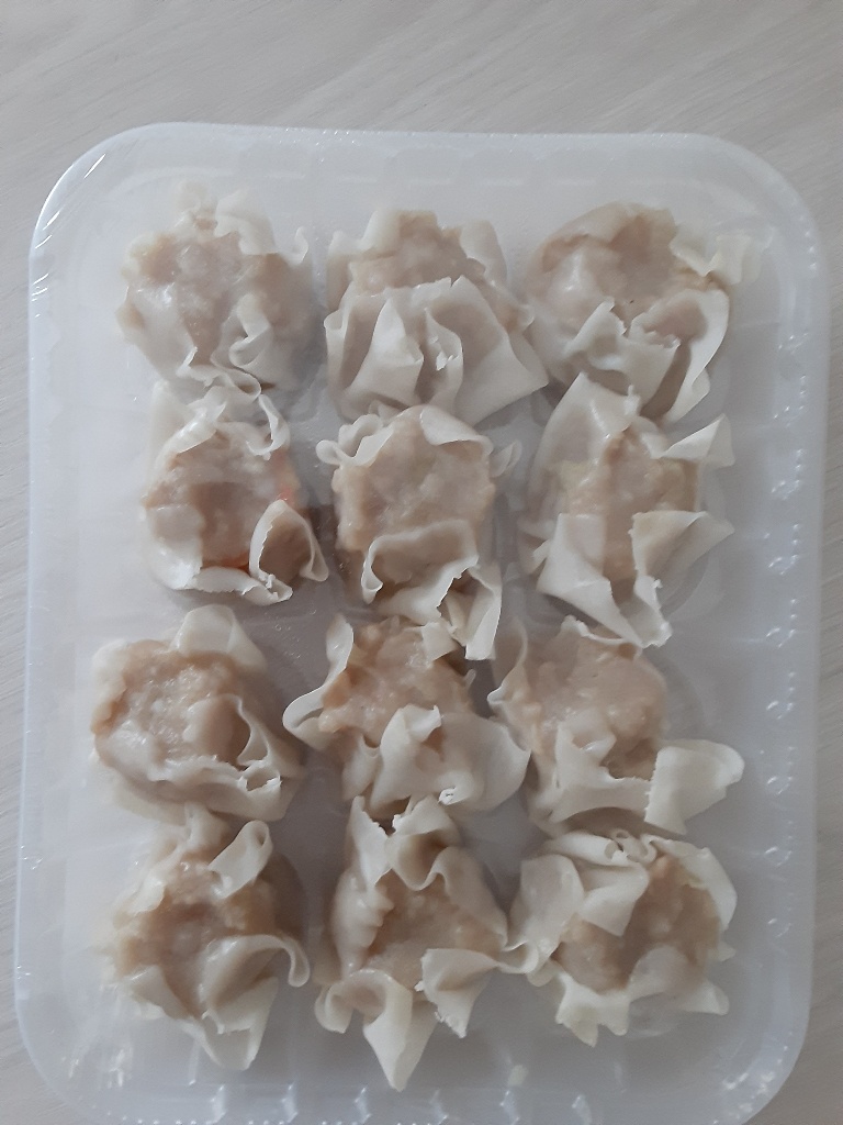 早速→レンチンで🥢何も付けなくても野菜の旨味がシャキシャキと感じられ美味しいです😋明日のお昼の焼売弁当にと作っていたけれど夕食に2個つまみ食い~😆明日用にラー油を、かけてしまったけれどいらなかったかも~😆明日のお昼楽しみに頂きます🍴🙏
