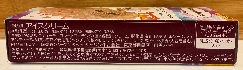 ミルクと紅茶の濃厚な味わいが楽しめるミルクティーアイスクリームに、豊かな香りの紅茶ソースを合せ、ダージリンの風味とザクザクとしたフィアンティーヌを閉じ込めたミルクティーチョコレートコーティングで包み込みました。