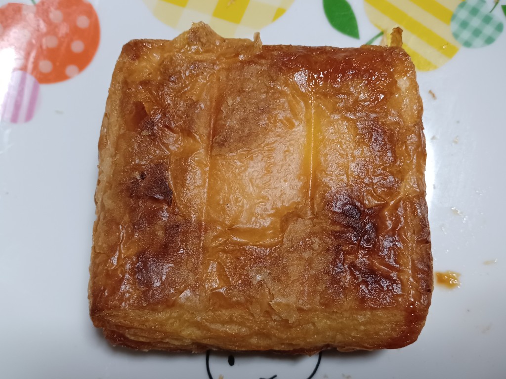 デニッシュ生地はハラハラしっとりで全然重くなく、バター(おそらくマーガリン)も嫌じゃない油脂感でした。