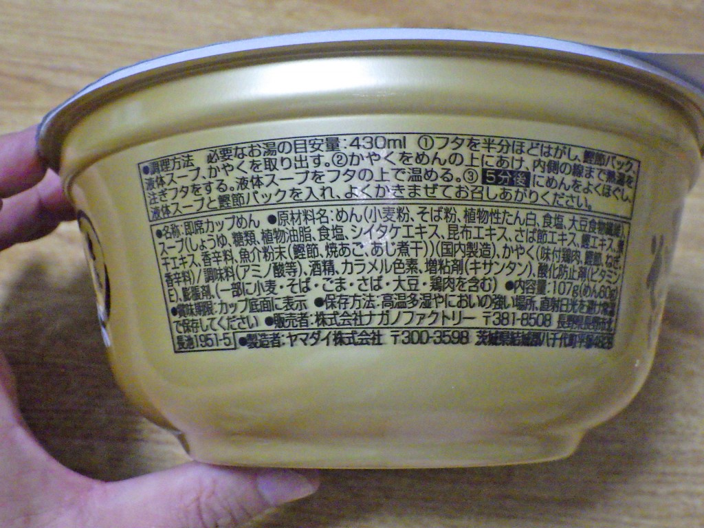 製造はヤマダイです。 池森そばには結構お世話になってます。 DEEN時代は知らないんだけどね、ロック聴かんしw スーパーでよく安売りになるのよww 賞味期限近いの買ってきて湯がいてる(๑˃̵ᴗ˂̵) そばつゆもよく売ってるけど甘めなんだよねぇ。 さてこのカップ麺は、常陸秋そば20%配合のノンフライ麺だそーで、味付け鶏肉と葱、鰹節が付く。 味はちょっとぼさつくけど、歯切れの良い麺は乾麵と比較してもなかなか遜色ないレベル。スープはブラックペッパーの香りがして出汁の利いた甘めのつゆを引き締めます。 ちょっと凄麺の出来あい品を寄せ集めただけの商品と思ってましたが、カップ麺では最高レベルじゃないですかね。スープが甘いのが気になりますがw 年越しそばに最適。 追い花かつおもお勧め。