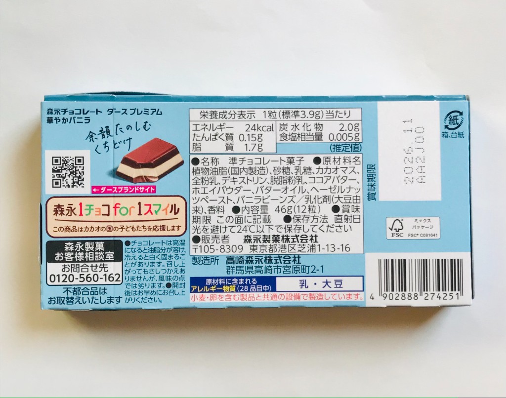もぐナビホームへ > お菓子 > チョコレート > 森永製菓 ダースプレミアム 華やかバニラ