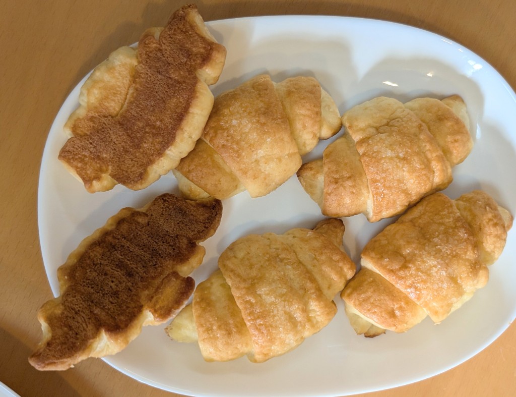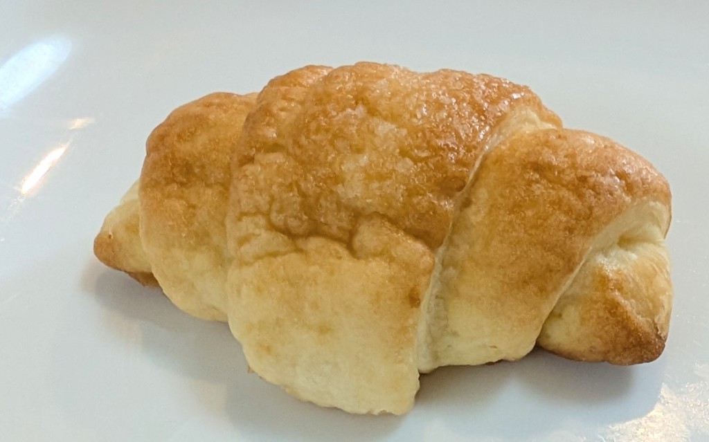 今月の新商品🧈 バター風味のビスケット生地を合わせて焼き上げた一口サイズのクロワッサンです。6個入。 とのこと🍀 2026年1月1日発売 140円位で購入 1個あたり95kcal 近所のスーパーで 少し安くなっていたので購入しました✨️ 1個は手のひらサイズの ミニクロワッサン。 開封すると、 バター系の菓子パンの 甘芳ばし香りが❤(ӦvӦ。) 🌸常温 しっとり、ぺとぺと。 表面にはザラ…続きを読む