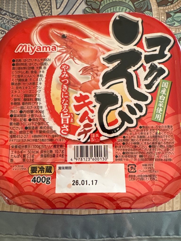 美山さんのキムチは どれもハズレは無し こちらの "コクえびキムチ "も 酸っぱ過ぎることも無く 白菜のシャキシャキもあり 海老の風味も少々あり美味しかった またリピートします