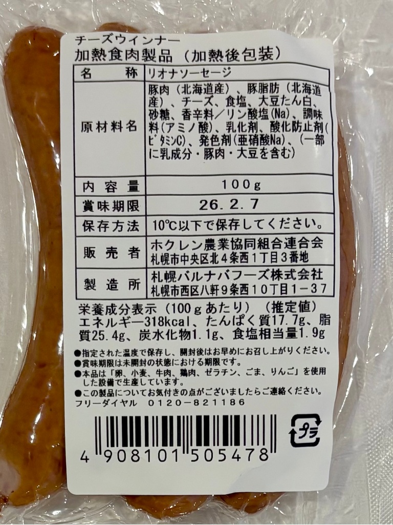 もぐナビホームへ > ホクレン > ホクレン チーズウインナー