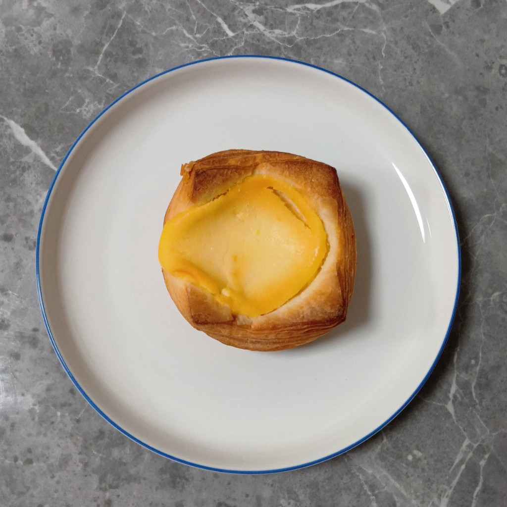 デニッシュ生地はふかっとしっとり口溶け良く、優しい塩味とマーガリン風味がある香ばしい生地🤭