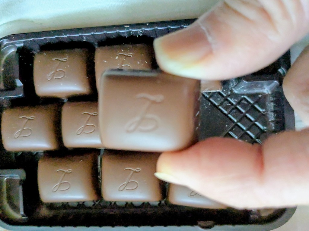 バッカスの中身のブランデーは結構辛くカっとなり、それが外の甘いチョコで中和されている印象ですが、こちらはラム酒の甘みがあり、さらに元の甘いチョコで包まれているのでかなり食べやすいです。