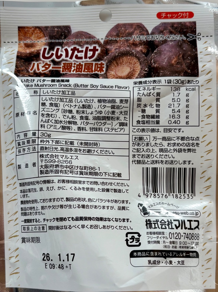 もぐナビホームへ > お菓子 > おつまみ・ドライフルーツ > マルエス しいたけ バター醤油風味