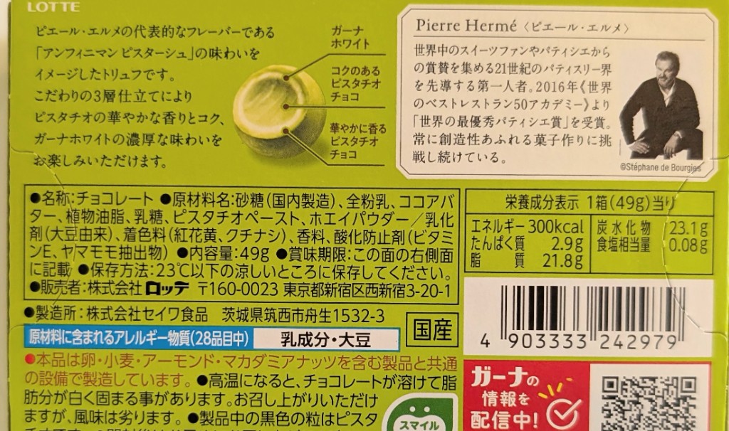 もぐナビホームへ > お菓子 > チョコレート > ロッテ プレミアムガーナ トリュフ アンフィニマン ピスターシュ