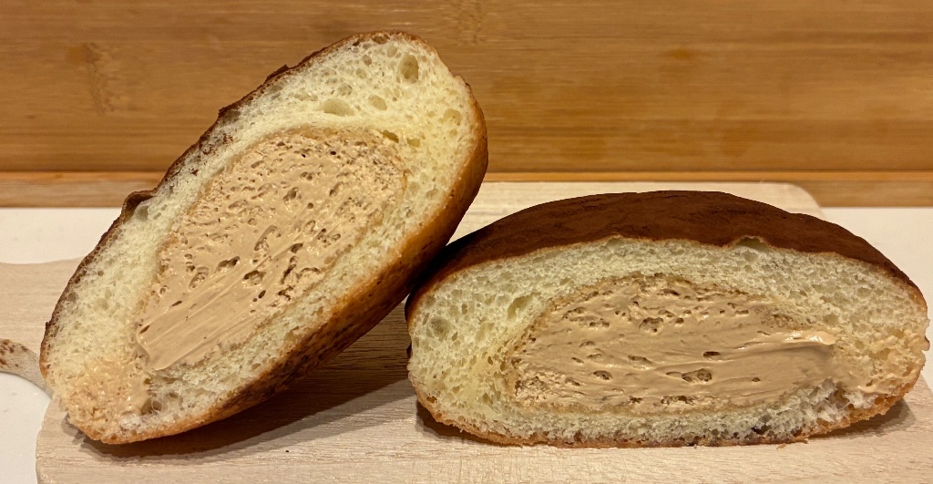 ティラミス風味のクリームはコーヒーとチーズを合わせ、香りとコク、そしてやさしい甘みが重なります。ココアパウダーが味を引き締め、バランスが取れた、落ち着いた印象の味わいです。