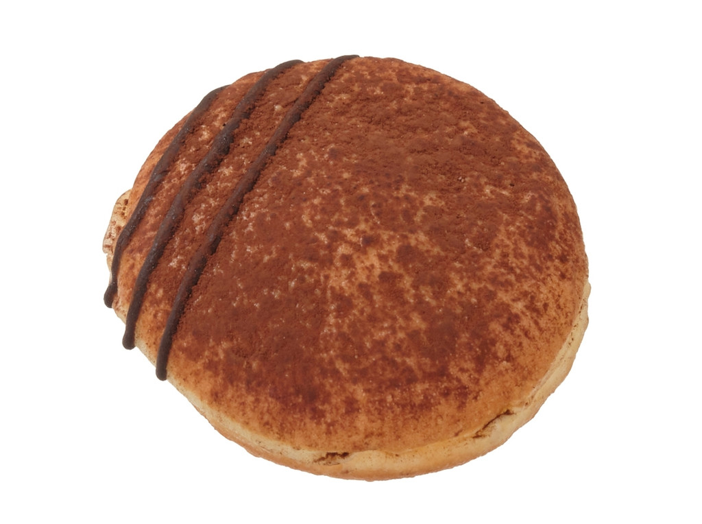 「ふんわりとした口どけの良いドーナツ生地に、ティラミス風味のクリームを注入し、表面にココアパウダーをかけて仕上げたドーナツです。