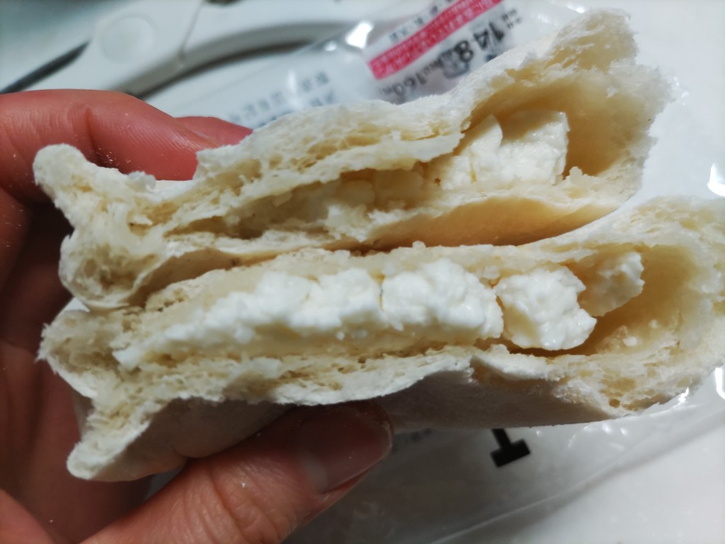 レンジ温めでは、更に生地がクタッと柔らかくなり、餅のような食感が強くなりました。ただし、常温ではほぼ感じなかった白パン特有の発酵臭も復活してました。トロっとなったチーズフィリングは、食感は変わりましたが味自体は常温とほぼ変わらない印象でした。