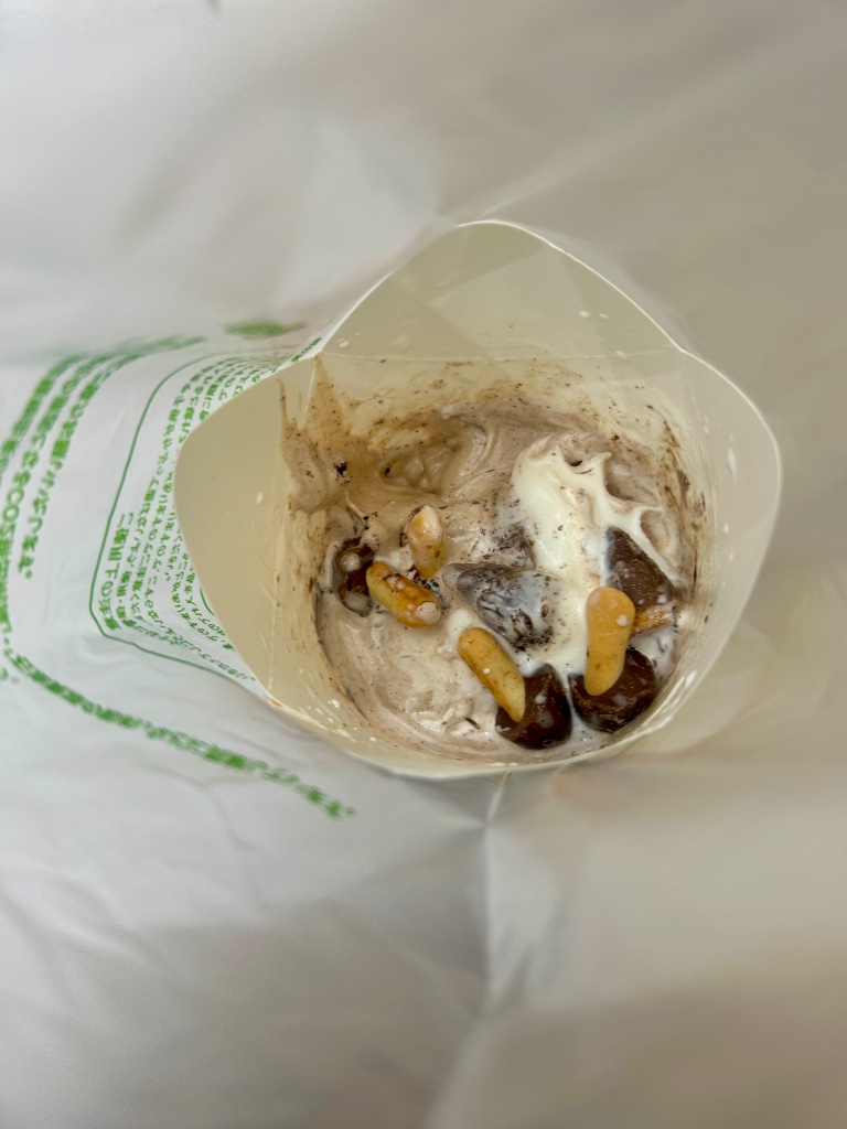 アイスは滑らかで、バニラの香りとチョコの風味が強めで甘さも強めです🍫