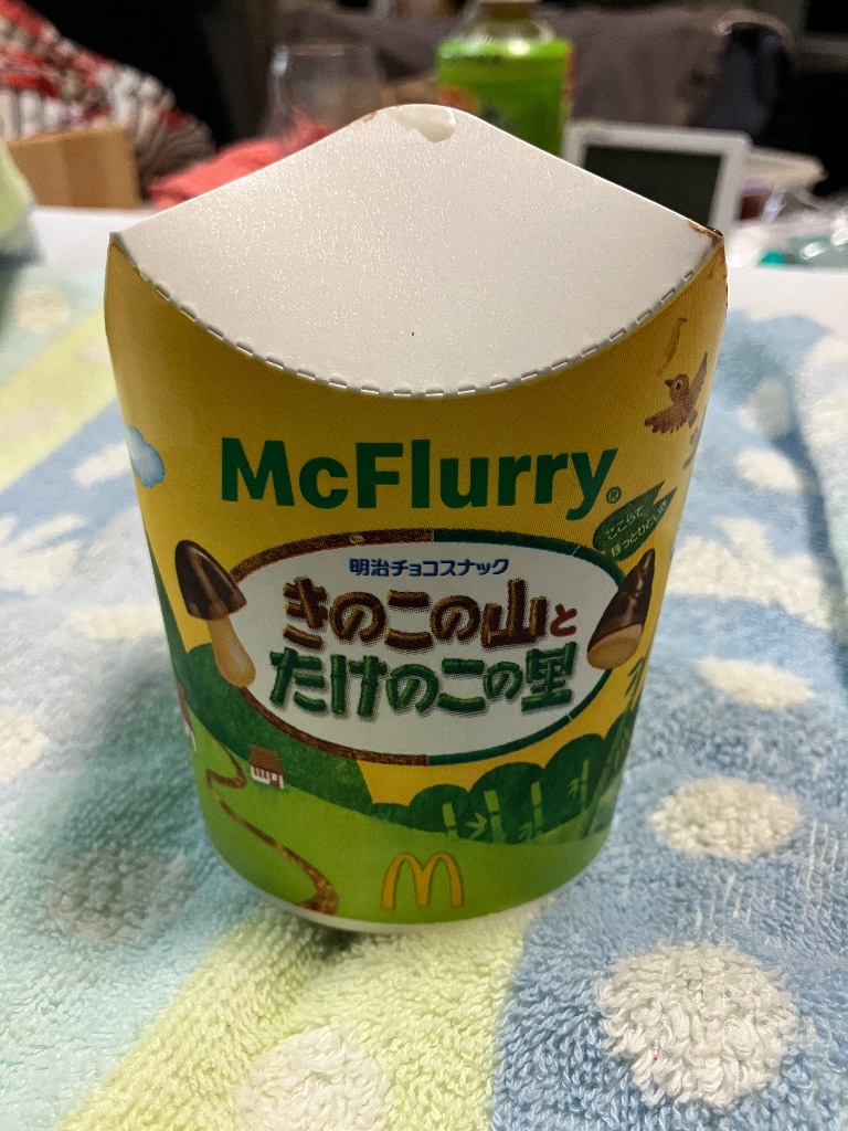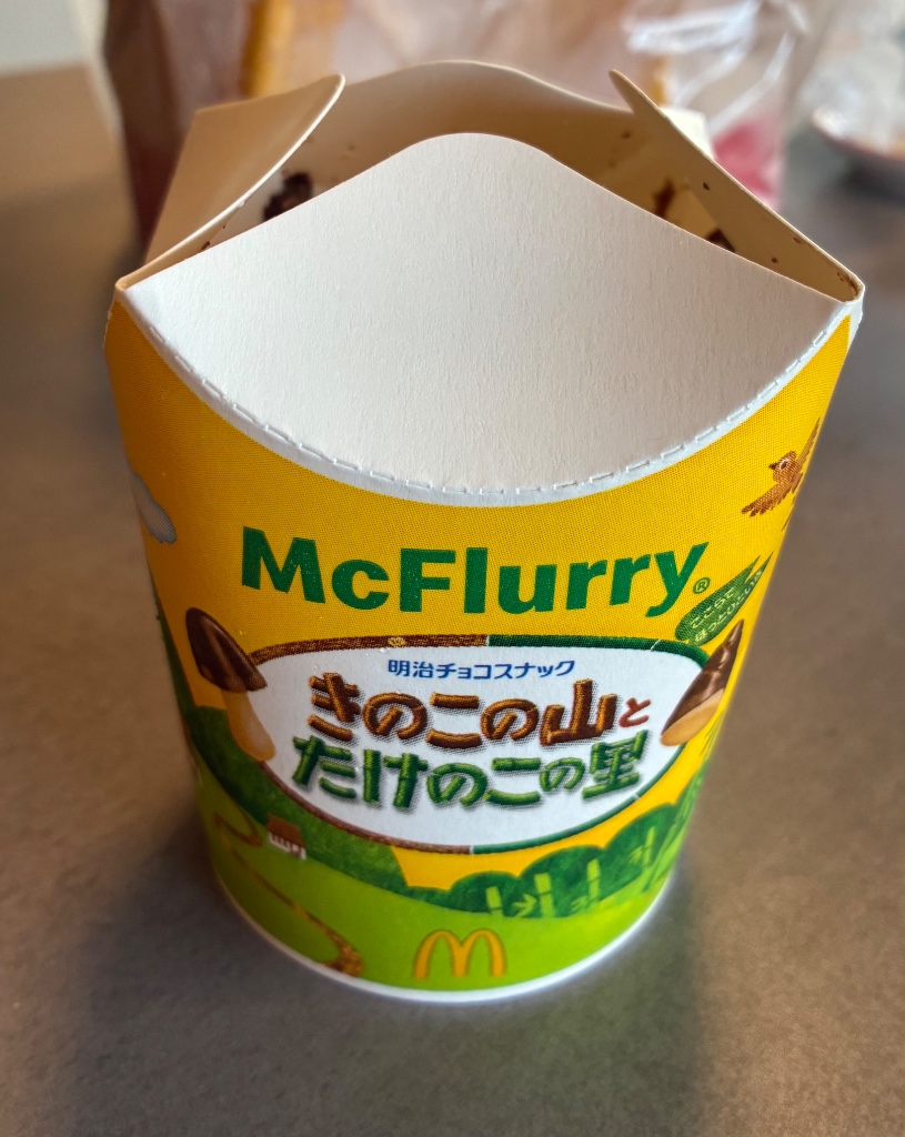きのこの山とたけのこの里が入ったマックフルーリー。話題になってたので買ってみました。