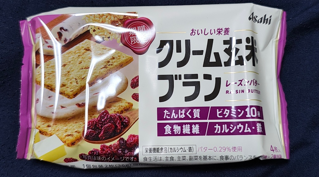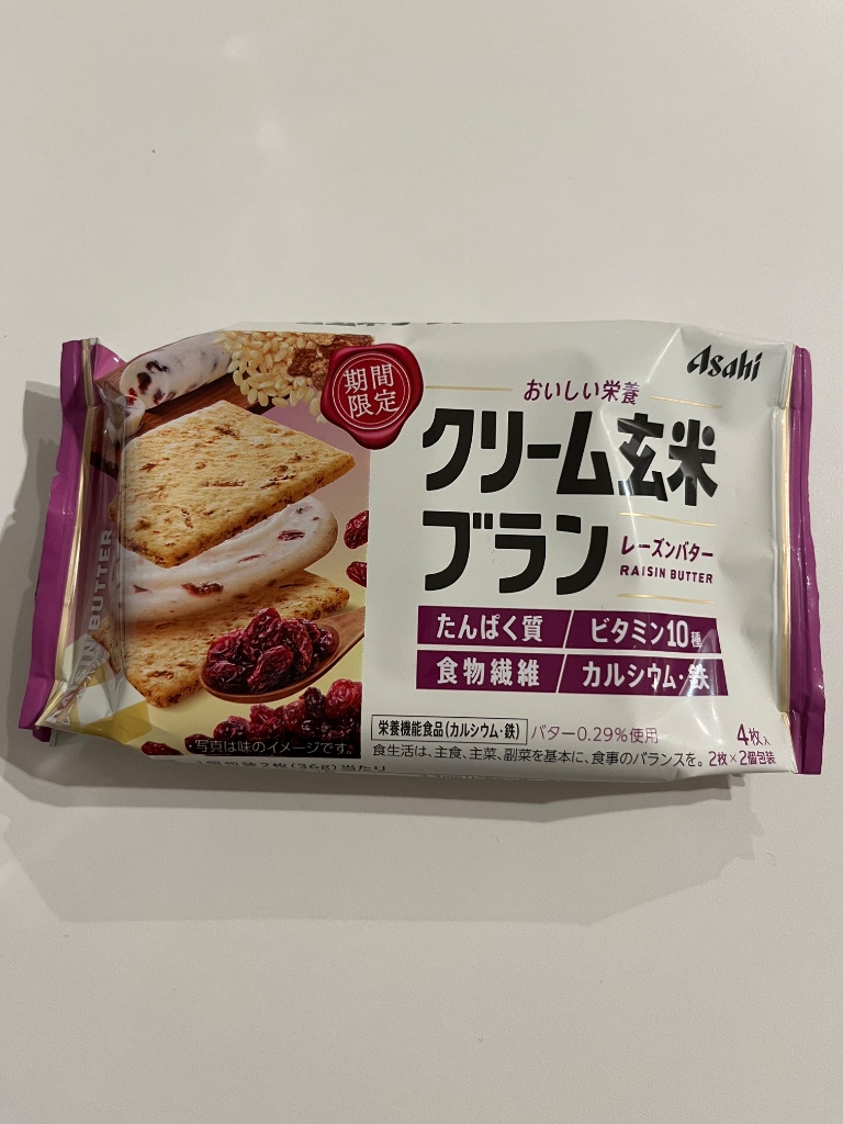 アサヒ クリーム玄米ブラン レーズンバター 176kcal(1袋あたり) 気になっていたので買ってみました! ザクっといい歯応えの生地✨... 続きを読む