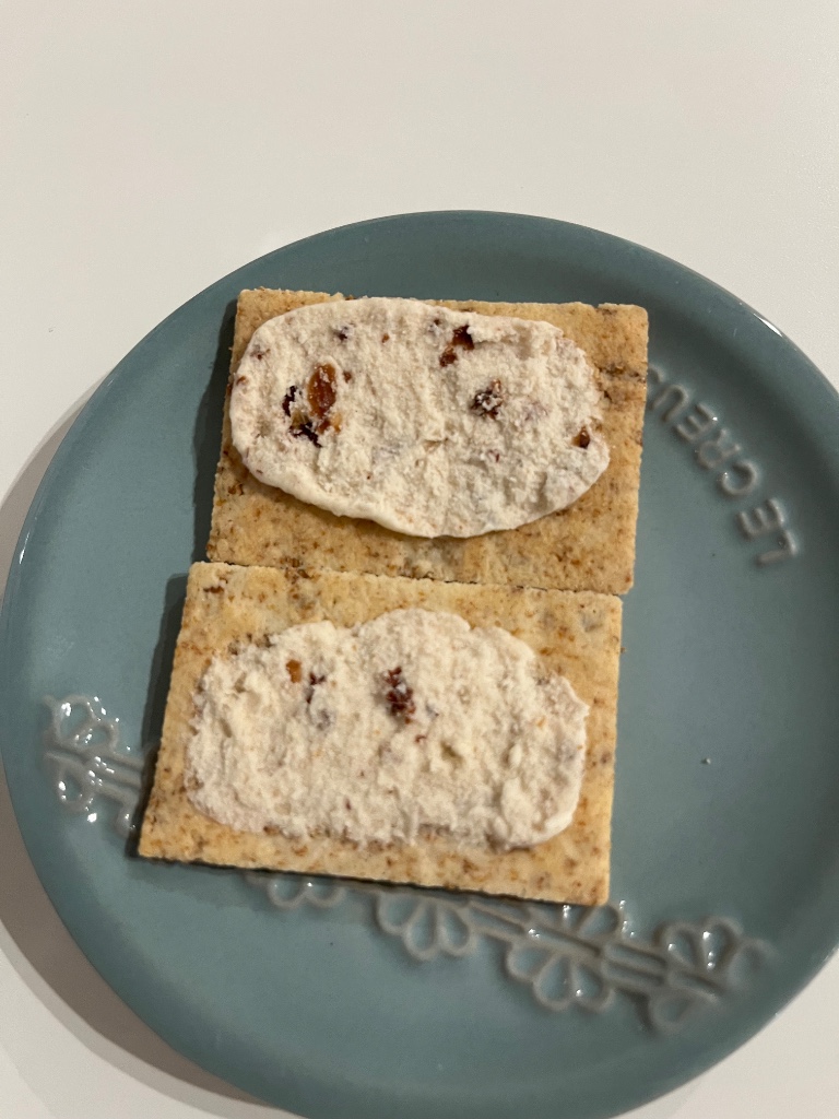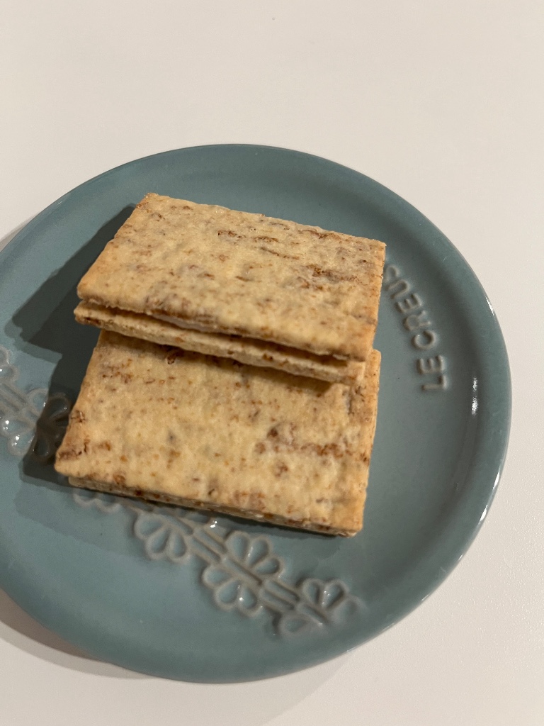 アサヒ クリーム玄米ブラン レーズンバター 176kcal(1袋あたり) 気になっていたので買ってみました! ザクっといい歯応えの生地✨ オールブランのかための食感も香ばしく、ほんのり塩気も感じられて生地だけで食べたいくらいおいしい! レーズンバターのクリームは少し独特な香り レーズンは細かく刻まれていて、食べるとバターのまろやかな風味とレーズンのフルーティな風味🥰 程よく酸味もあって、後からメープルっぽい甘さもあります! クリームだけだと油…続きを読む