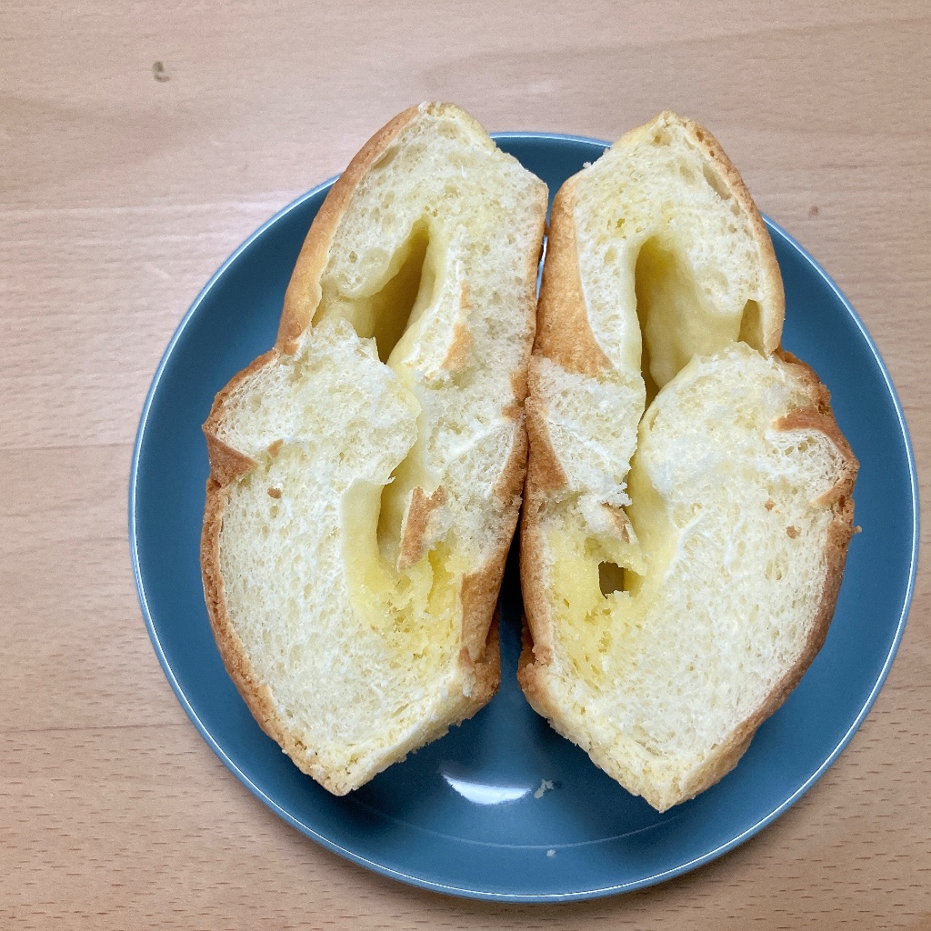 中はバターが良い感じに染み込み、しっとりふわふわでパン生地がきめ細かく軽い食感で美味しい🎶