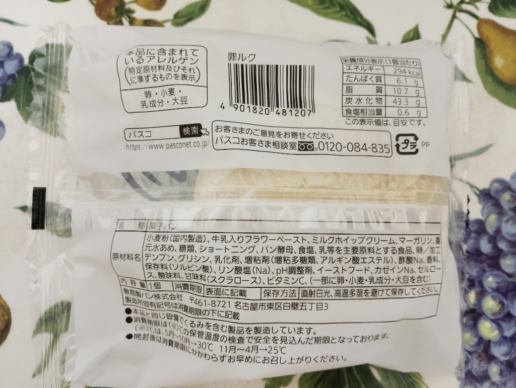 製造は敷島製パン(パスコ)。
