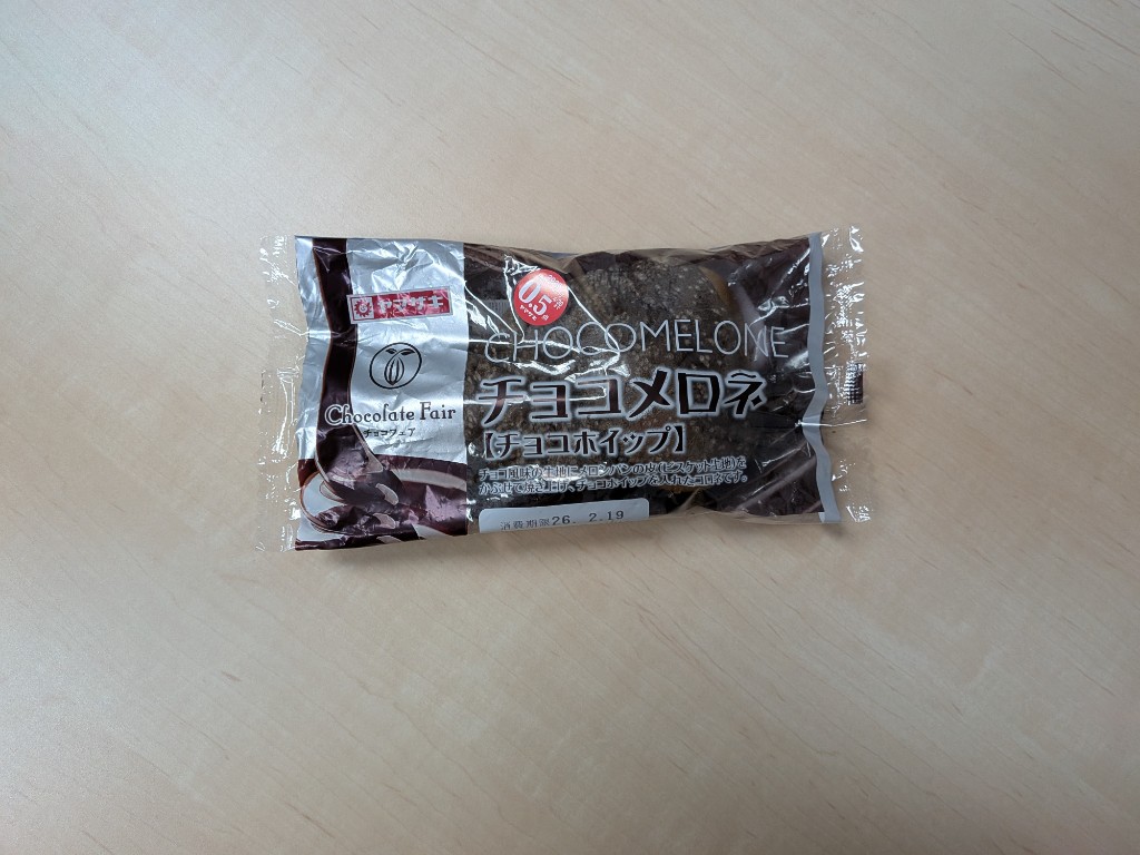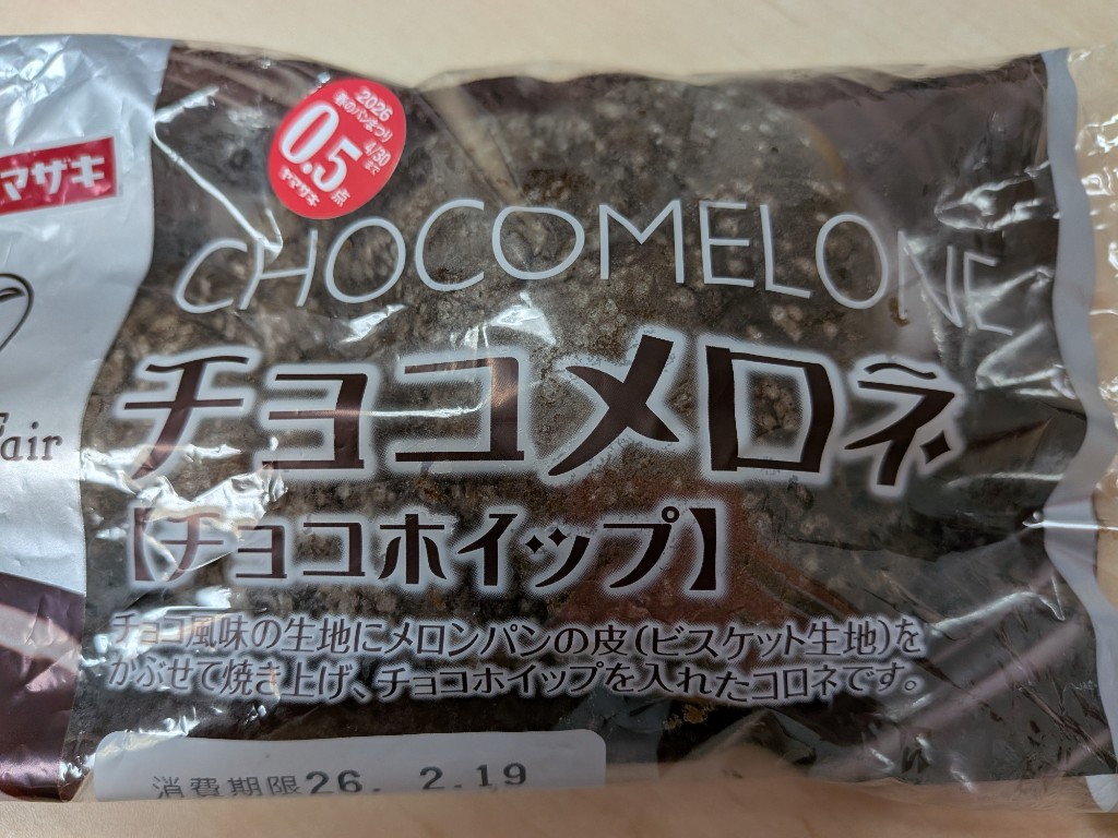 ヤマザキ チョコメロネ チョコホイップ。気になっていたこの新商品。お値引き品で75円だったので、購入しました。