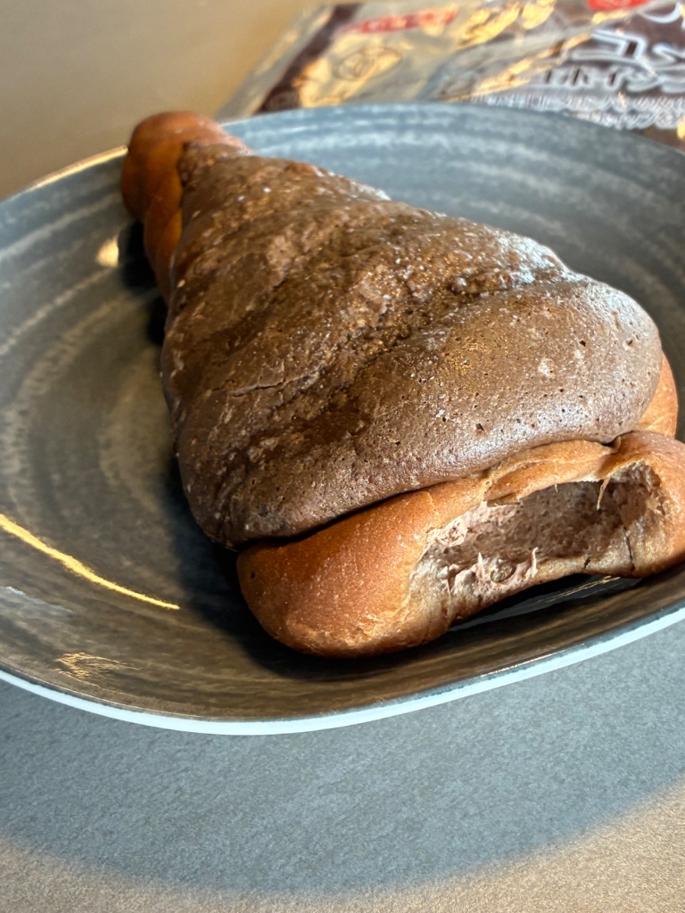 見た目は表面がビス生地のチョココロネ。柔らか食感で、甘くて美味しい〜(*^^*)