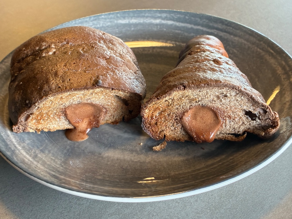 少しぎっしり感のあるパンに、ビスケット生地が被せられ、中にチョコレートホイップが入っていました。