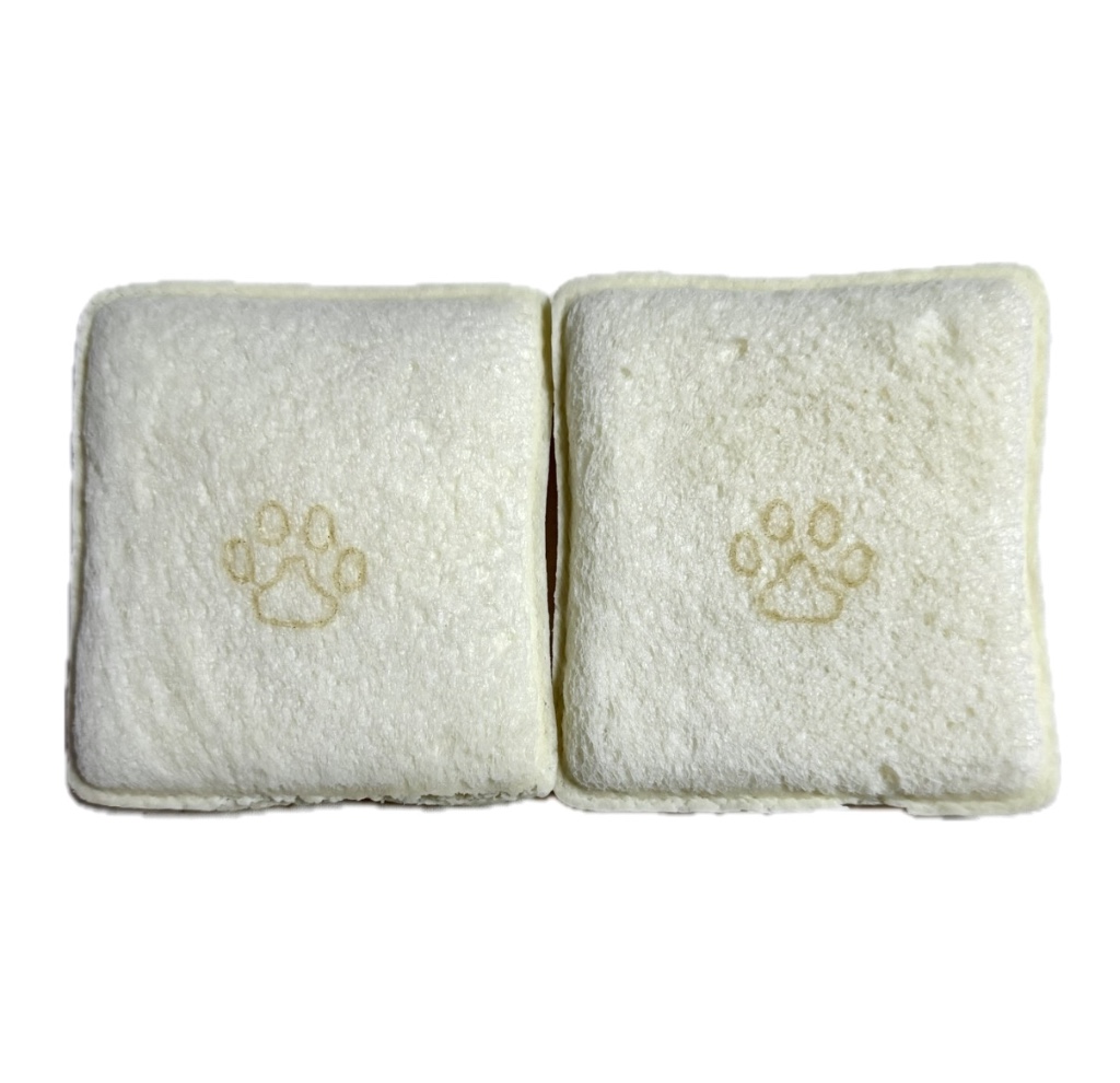 肉球の焼き印を入れたパンにつぶあんとホイップをサンドしたランチパック。あんことホイップで甘じょっぱい味。美味しかった!