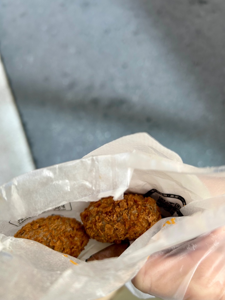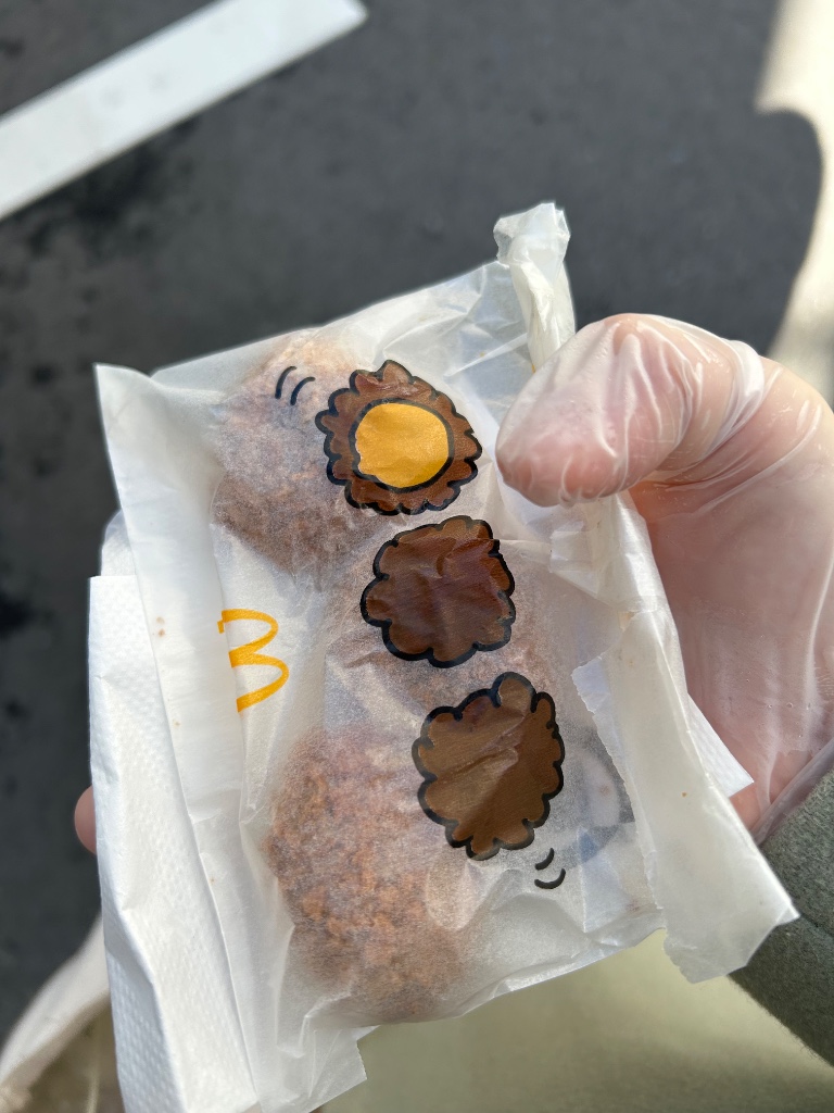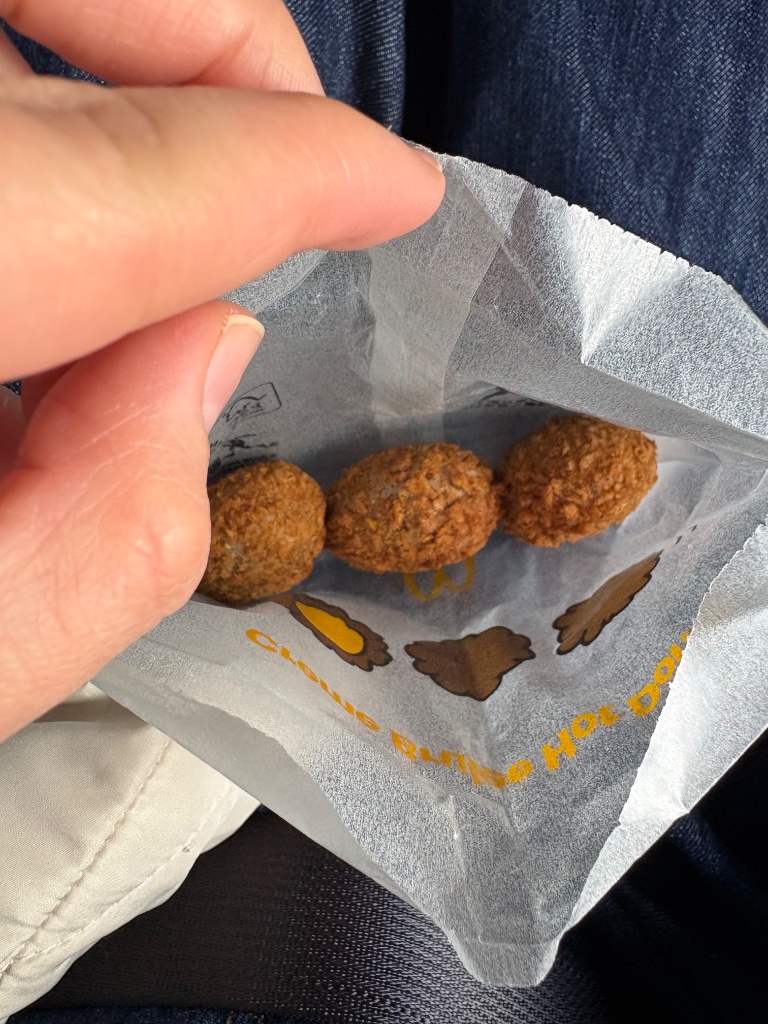 マックの袋から、毎年この位の季節に出るマックのちっこいチュロスと同じような甘ーい香りがしました。