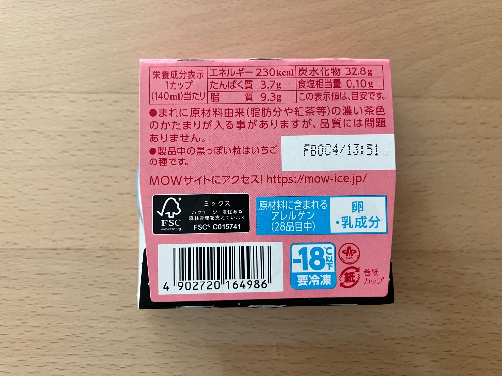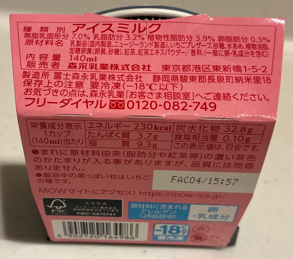 MOWなので他社カップよりクリーミーでしっかりイチゴ感もあり美味しかった