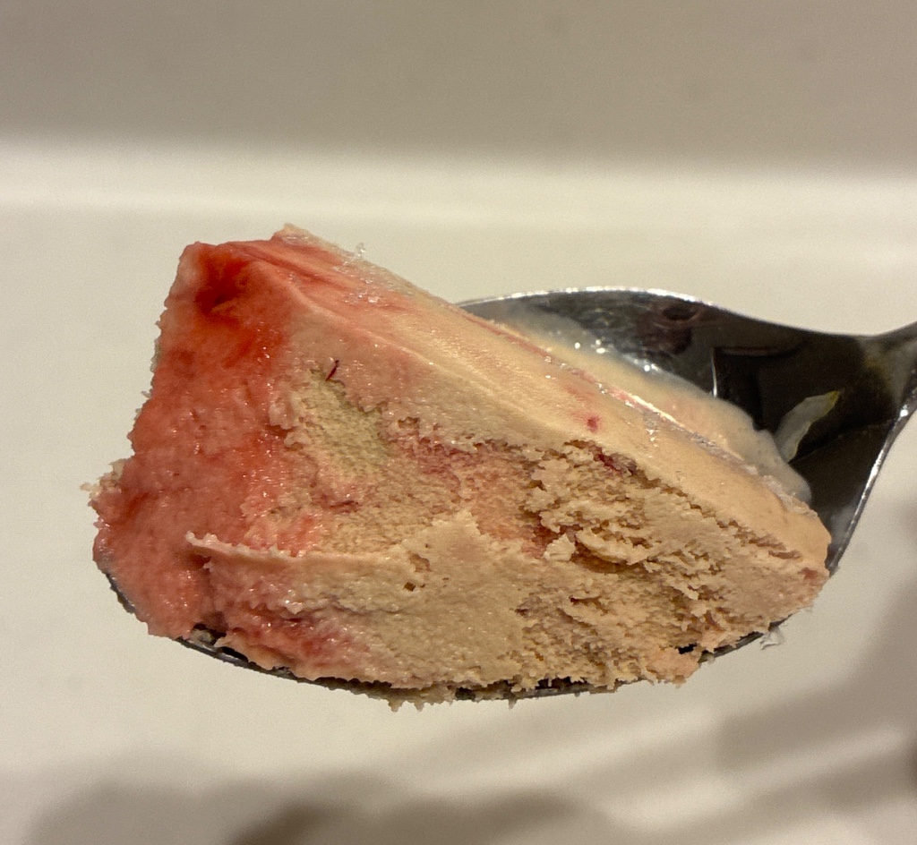 ランダムに混ぜ込まれたいちご果肉は粒感もあり甘酸っぱい🍓