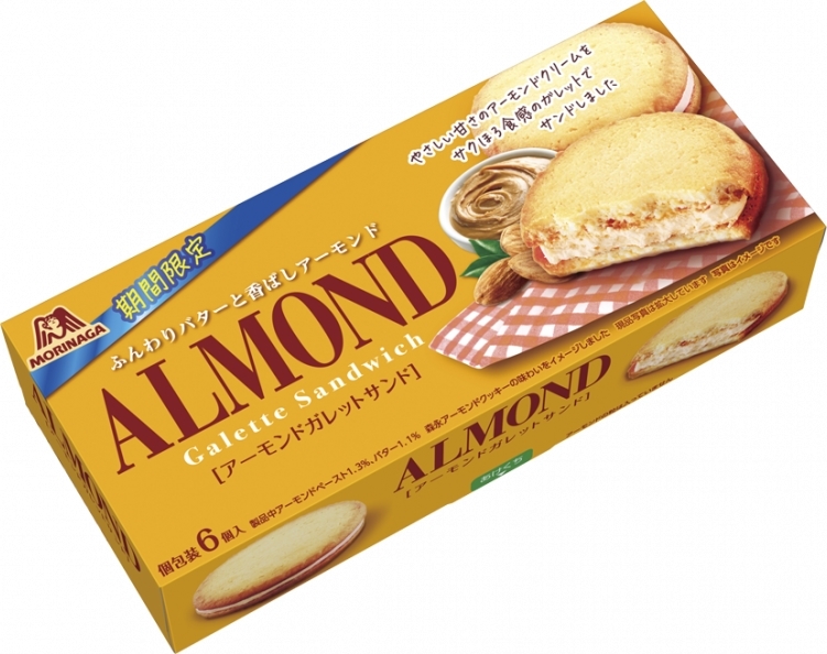 森永ビスケット「アーモンドクッキー」の味わいをイメージしたやさしい甘さとアーモンドの香ばしさが特徴の期間限定のガレットサンドです。