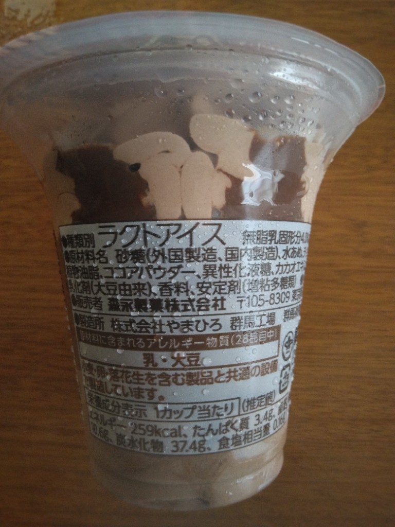 中央層の濃い茶色のアイスは、何となく氷菓寄りの食感で味は準ヒットチョコアイスバーに似ているような感じがしました。勿論土のようなカカオ風味もするのですが、さっぱり甘い系というか。