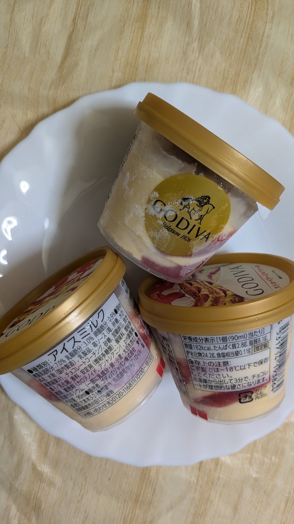 ようやく近くで発売されたので期待を込めてストック用まで買ってきました! このシリーズ、去年のピスタチオから見てきて、初めてのホワイトチョココーティングと、初めて天面にフィアンティーヌだ! ということで、上部はサクサクのフィアンティーヌに、パキッと美味しいゴディバの、甘いけどしつこくない分厚めのホワイトチョコ🍫の食感系がお出迎え すぐ下は、ミルクのコクたっぷりで、たまご感がしっかり感じられるまろやかなカスタードアイスが、あまうま〜🥰 キュンと甘酸っぱい…続きを読む
