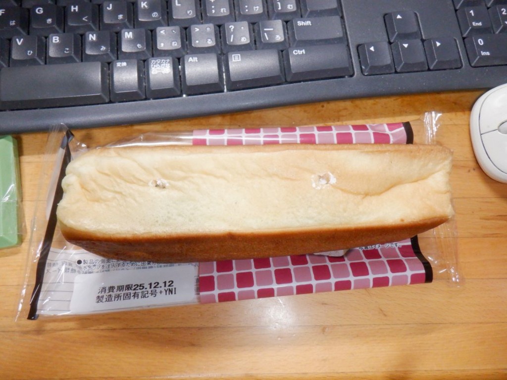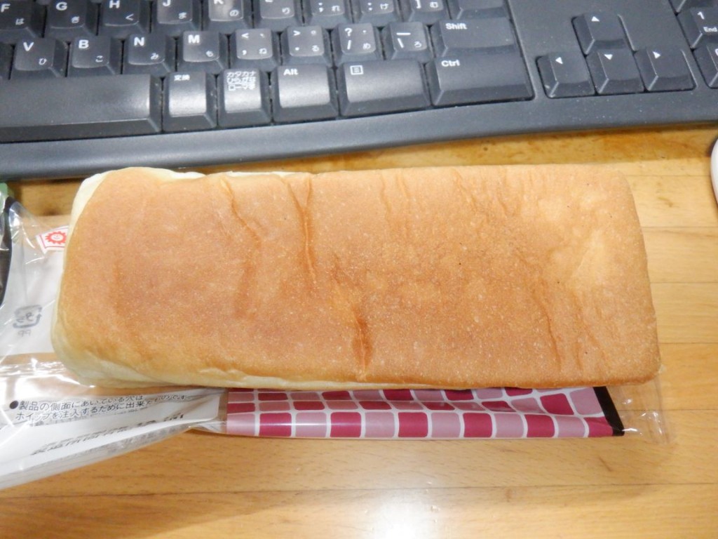 パン生地は、四角く成型したコッペパンのよう。表面はカサついていて、ヤマザキのハイカロリーめなパンによくある感じのパサパサ感です。食パンの耳に近いのでしょうか。
