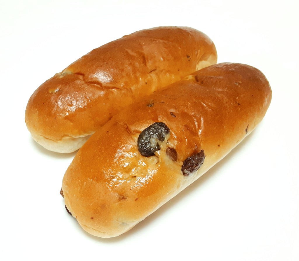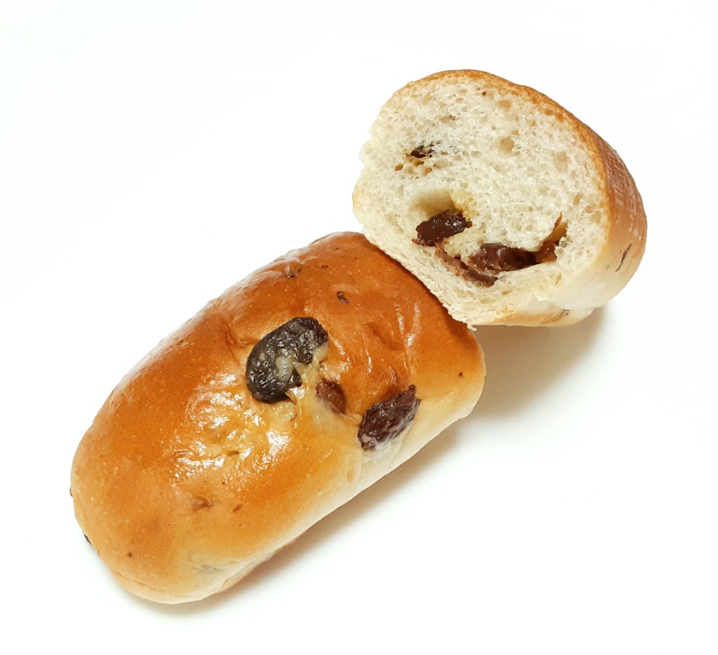しっとりとしたほんのり甘いロールパンにレーズンは少なめですが洋酒漬けのレーズンが入っていてシンプルですがおいしいです