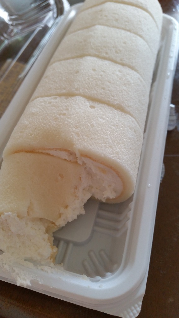 真っ白なロールケーキ生地に真っ白なクリームが巻かれていて、混ざり気の無さそうな感じがとても美味しそうでした。