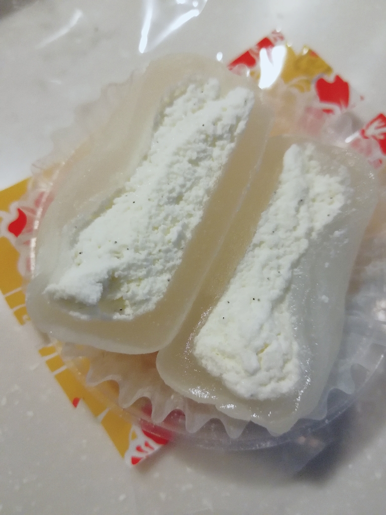 羽二重もちのようにやわらかくプニョっとした生地の中に、塩バニラホイップがたっぷりです(^^)
