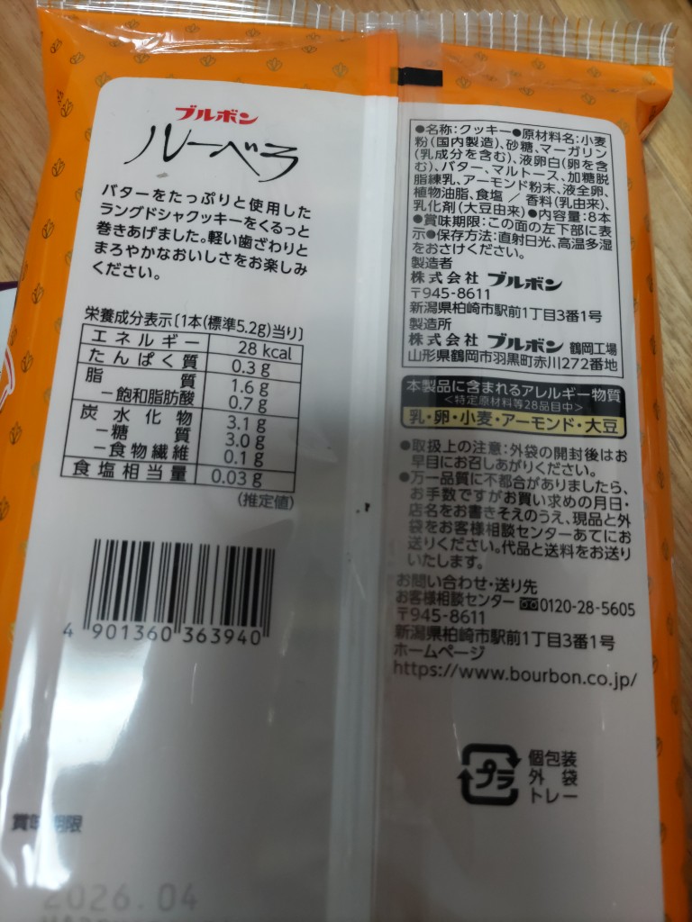 ローソンストア100で買った「ブルボン ルーベラ 袋10本」を家族でシェアしました。