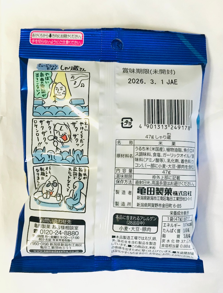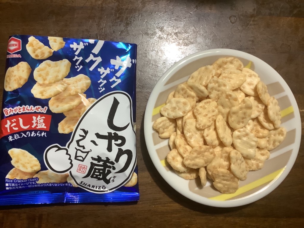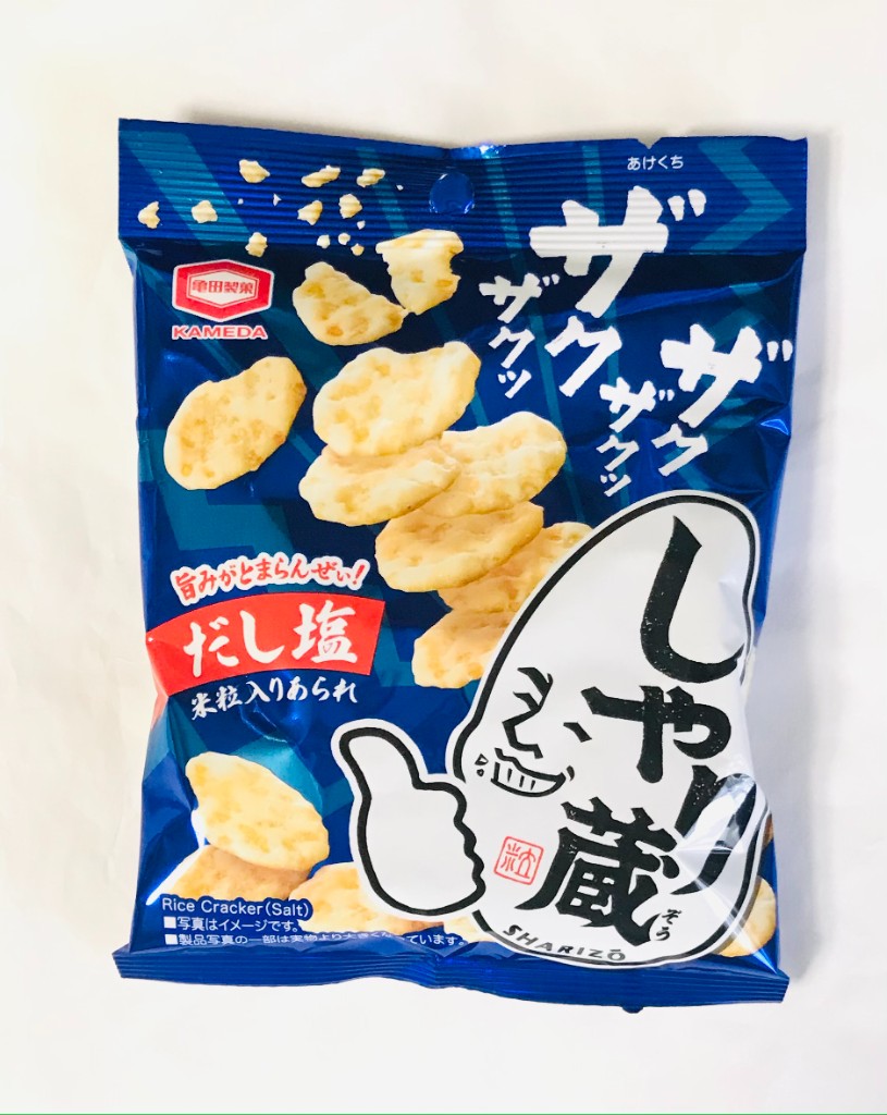 しゃり蔵 だし塩味。袋のイラストがなんとなく恐いお兄さんの顔。