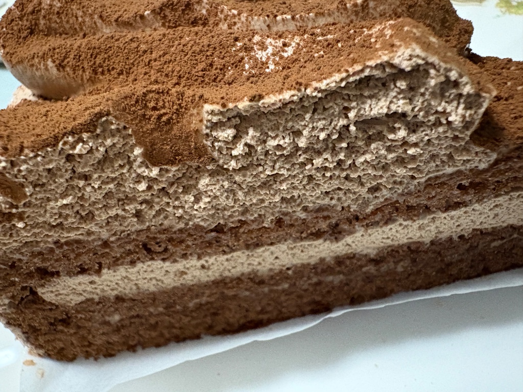 表面にはたっぷりココアパウダー⭐️が振ってありチョコクリーム🍫はほわほわ☁️エアリー✨