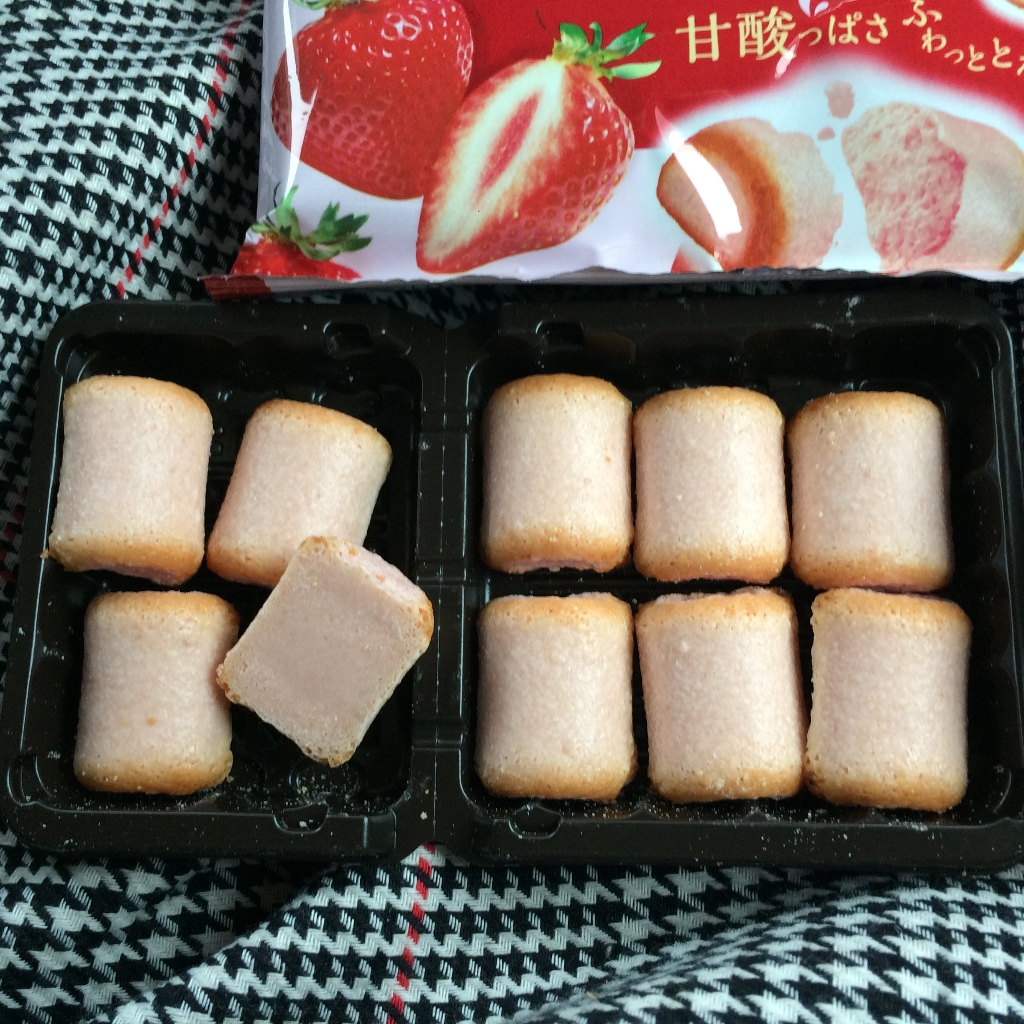 袋を開けると、いちごの香りがふんわりしました。安定の、さっくり、しっとりとした食感が大好きです。いちごの甘酸っぱさも感じられますが、甘さの方が強いいちご味。思っていたよりも、いちご味がしっかり感じられて、おいしかったです。
