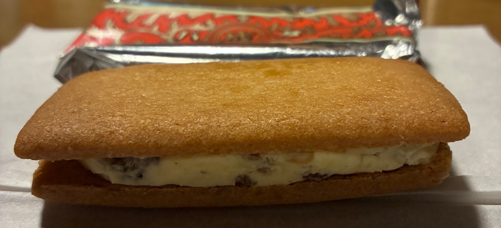 安定のおいしさでクッキー生地にサンドされたバタークリームとレーズンがあっています。