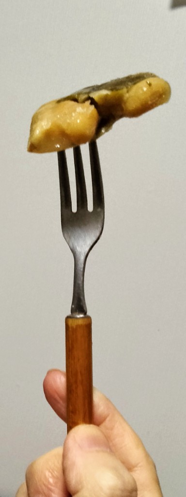 わずかな砂糖の甘みがあります。皮も煮崩れていない、きれいな具合の煮豆。