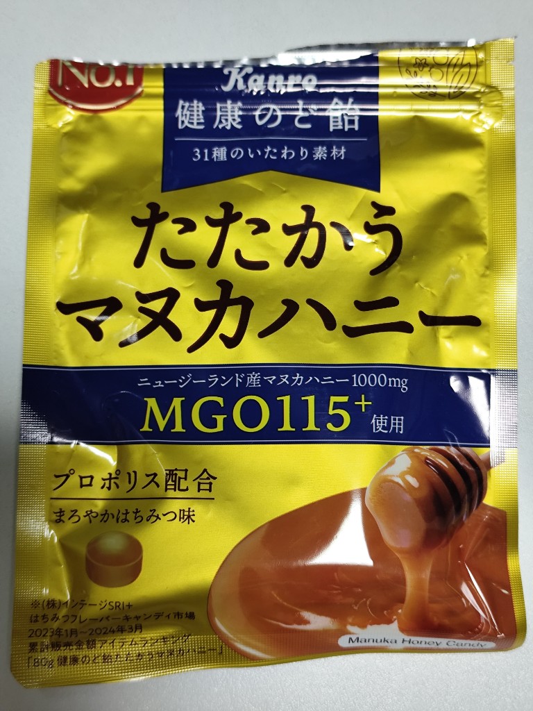 マヌカハニーはプロポリスとかで体に良さそう。しかものど飴だから効果が高そう☺