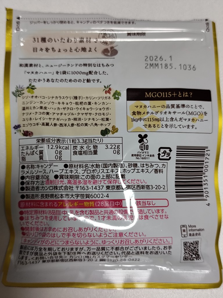 マヌカハニーの有無もあるけど、プラスハーブが使われているから味や体感?(スースー感?)はどんなかな?... 続きを読む