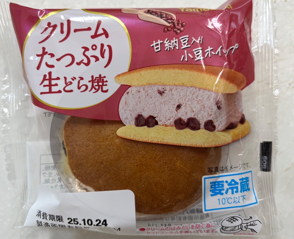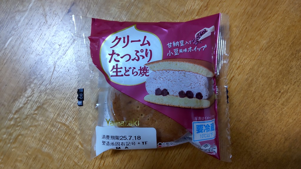 ヤマザキ クリームたっぷり生どら焼 甘納豆入り小豆風味ホイップ 。何度かリニューアルしているこの商品。安くなっていたので、久しぶりに購入しました。