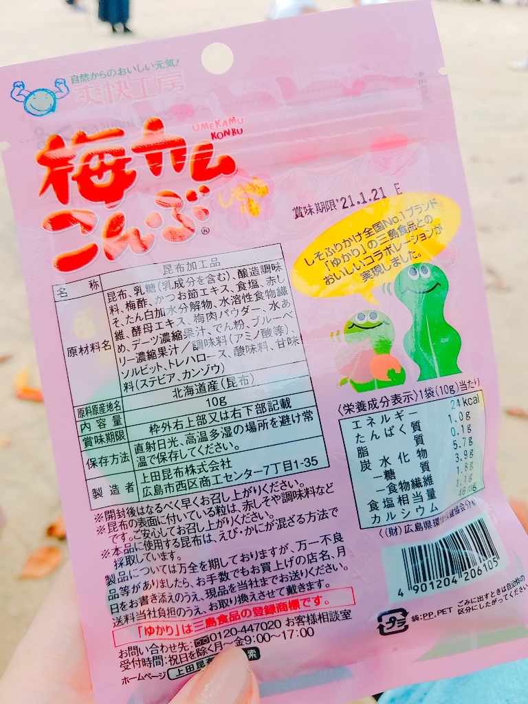 ドライ食品のコンブに梅パウダーとゆかりがまぶしてあって、コンブの旨味が増してます(笑)